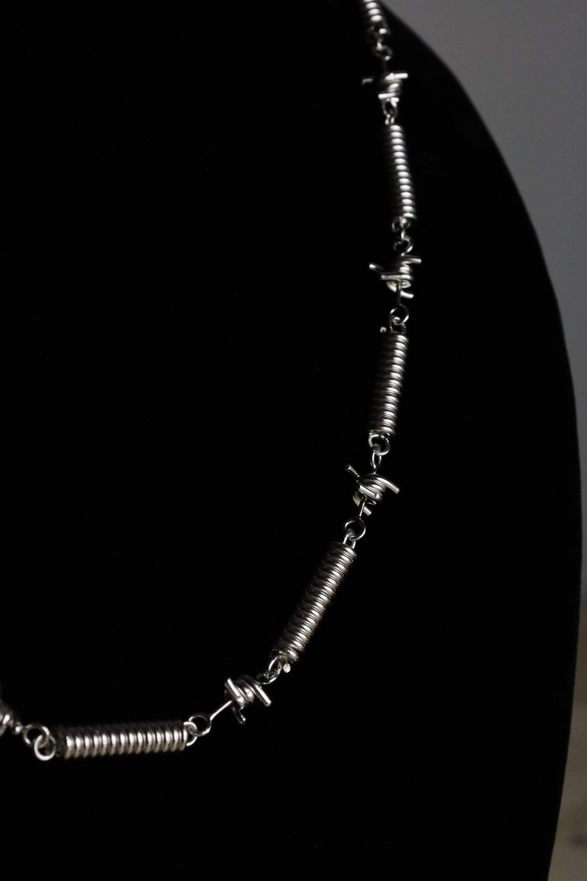 Barbwire is a symbol of boundaries, I've transformed something meant to repel into something worn with purpose. It's not meant to threaten, but to signal awareness, restraint and control.