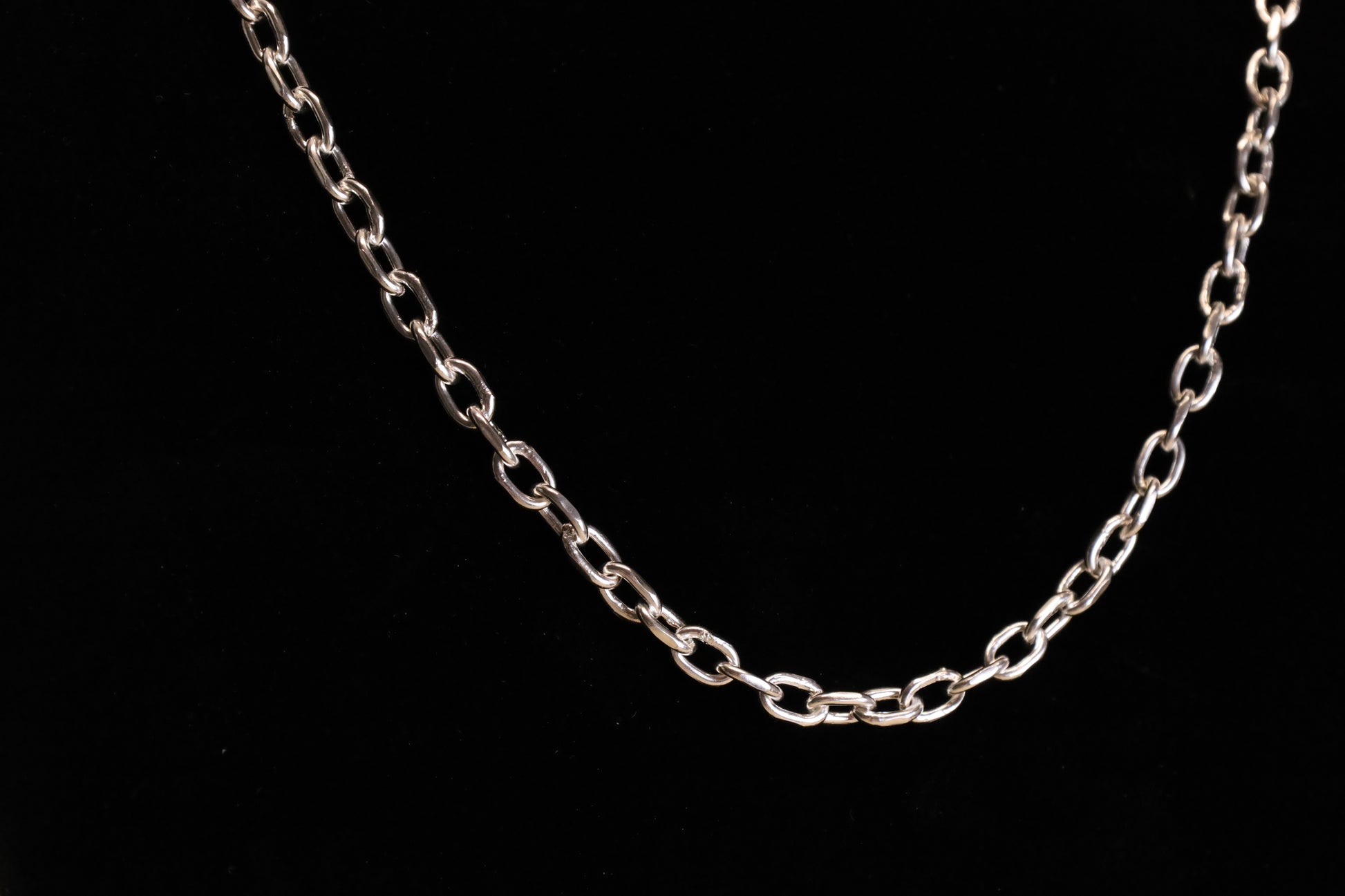 A simple oval link chain, made to disappear into the background and let your pendant speak.